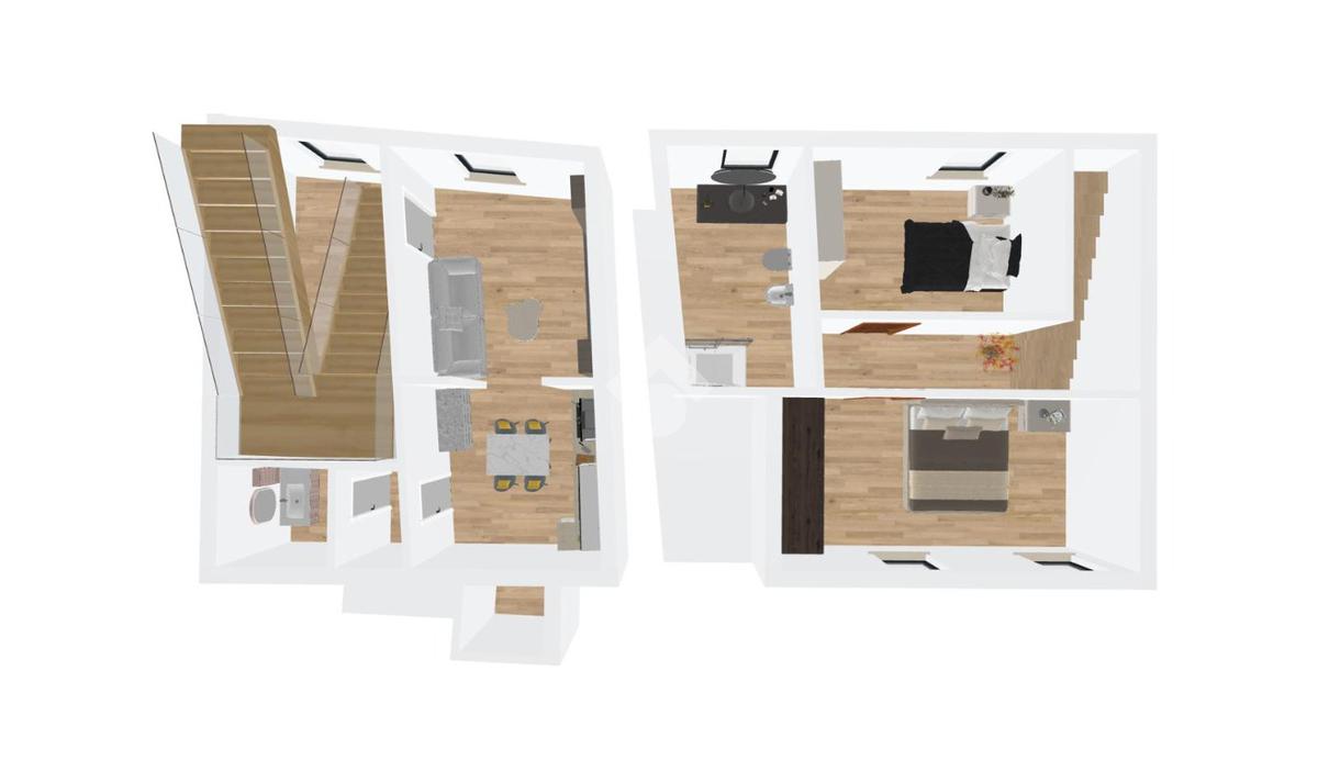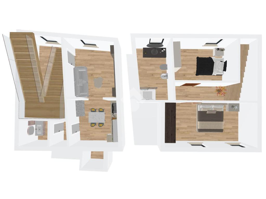 In stabile quadrifamiliare totalmente ristrutturato, bicamere biservizi su 2 livelli. Accedendo dall’ingresso condominiale, troviamo un ampia zona giorno open space con bagno di servizio e comodo terrazzo. Una scala a vista conduce invece al terzo e ultimo piano dello stabile, dove trovano spazio due camere da letto e un ampio bagno finestrato. Internamente dotato di riscaldamento a pavimento, predisoposizione per il cilmatizzatore, sanitari e pavimenti personalizzabili, l'appartamento è adattabile alle esigenze dell'acquirente. Il complesso, reso antisismico durante l'attuale ristrutturazione, dispone di serramenti in triplo vetro, cappotto su tutti i lati e tetto isolato e ventilato, che collocano l'immobile in un'elevata classe energetica.La soluzione, senza spese condominiali, è ideale per chi cerca un immobile indipendente e abitabile da subito. Assieme all’appartamento è possibile acquistare un posto auto coperto e un posto auto scoperto rispettivamente a €12’000,00 e €8’000,00.
