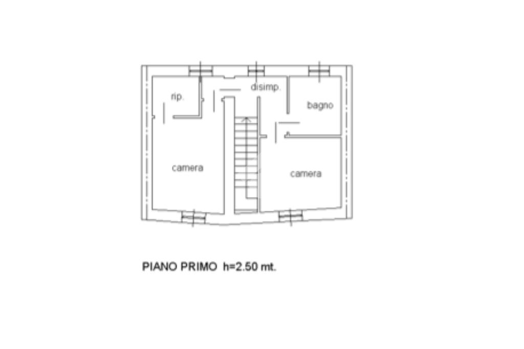 Al primo piano si trovano due camere da letto, entrambe con nicchia o cabina armadio e utilizzabili come matrimoniali, oltre a un bagno finestrato con doccia.