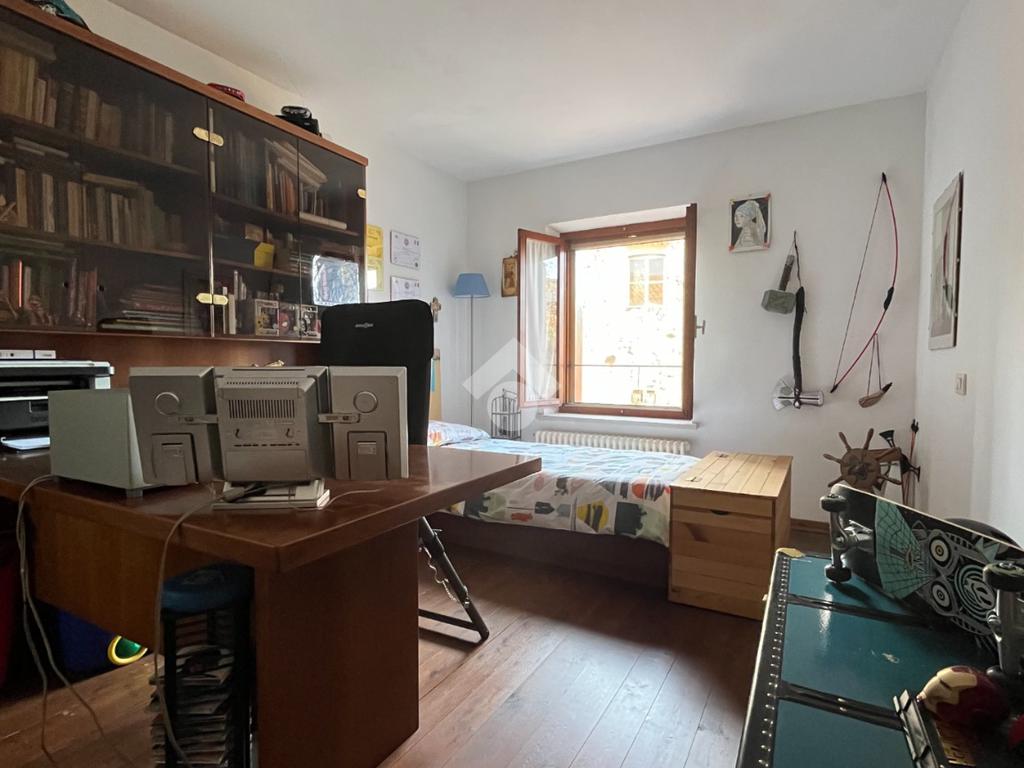 Quest’ultimo è collegato alla moderna cucina abitabile e al verde recintato di proprietà, dotato anche di comodo deposito e tettoia esterni.