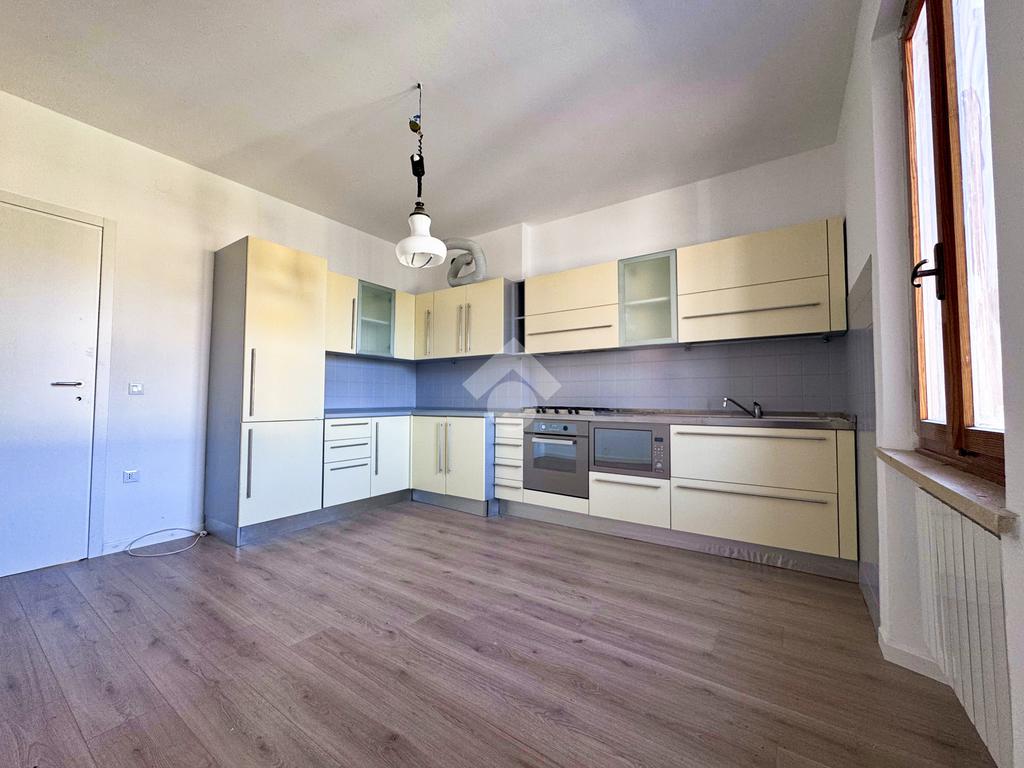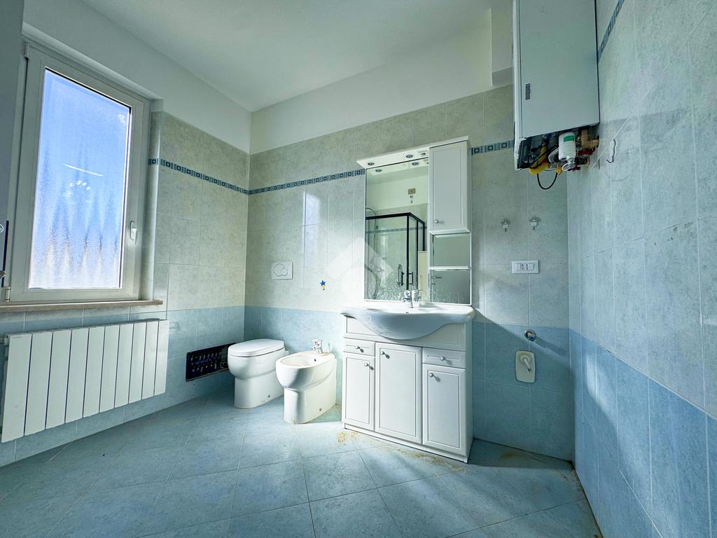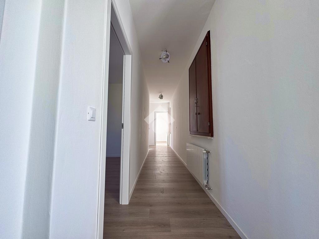 L’ingresso si apre su un disimpegno centrale che conduce a tutte le stanze: sulla sinistra si trova il bagno finestrato con doccia, mentre proseguendo si accede alla cucina abitabile e al soggiorno, due ambienti distinti che garantiscono comfort e praticità nella vita quotidiana.