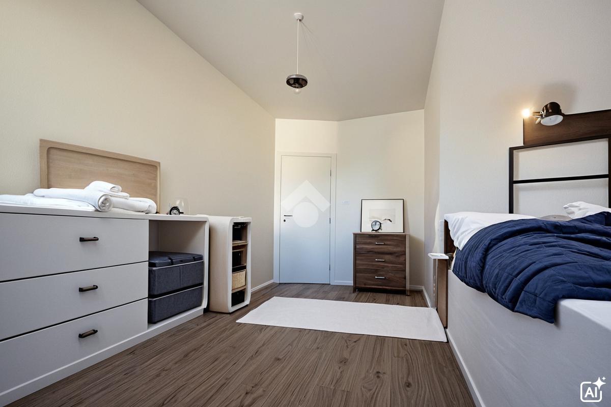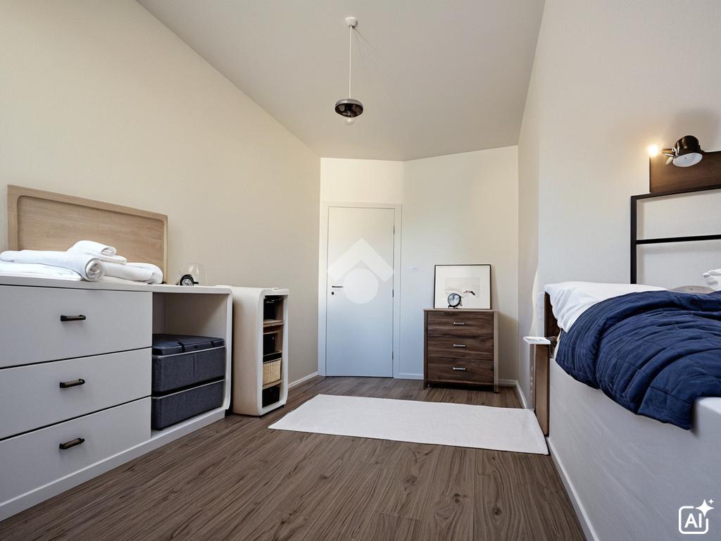 La zona notte comprende una cameretta singola, una camera matrimoniale e uno studio che può essere utilizzato come ripostiglio o trasformato in una cabina armadio.