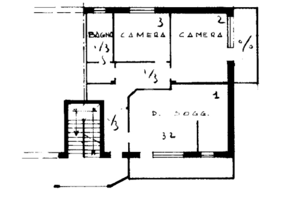 In stabile quadrifamiliare, proponiamo ampio appartamento bicamere parzialmente ristrutturato, situato al primo e ultimo piano.