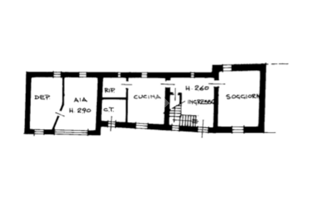 Al piano terra l’immobile si apre su un ampio ingresso, una cucina abitabile e stanza adiacente utilizzabile come dispensa o locale di servizio, un soggiorno e un sottoscala, utilizzato come ripostiglio.