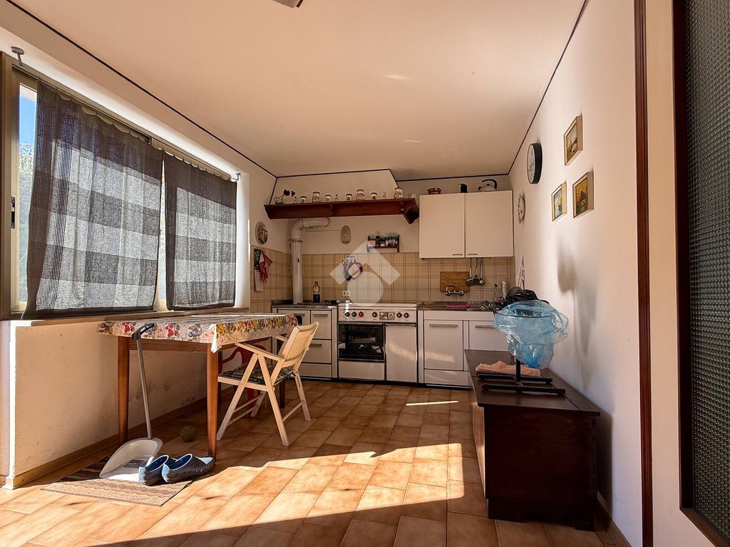 Sul retro dell’abitazione è presente un’ulteriore cucina di servizio e l’accesso a un ripostiglio, attualmente adibito a box auto.